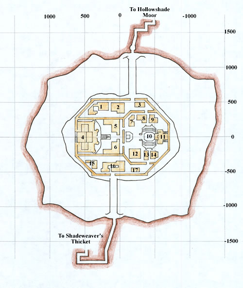 | 16 Merchants selling food, bags, wooden practice weapons, alcohol, ovens, Registrar, chainmail patterns | |